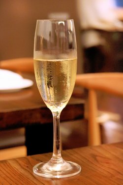 香槟:作为一杯味道相对比较清淡,香味适中的香槟酒,特别适合用来做开胃酒,从刚倒出来的那一刻开始,它体内的气泡就像是变魔术一般,好像有一条隐形的美人鱼在里面,持续的吐着小气泡,快要翻云覆雨的感觉。冰冻的喝一口,整个口腔的味蕾都被唤醒了,不自觉便喝下一杯,肚子大声呼唤着主菜的登场。