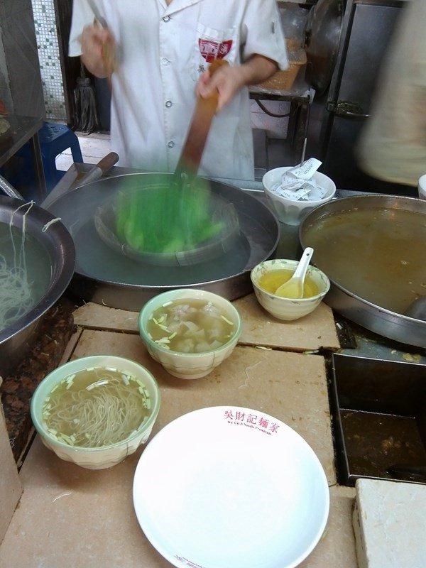 云吞面铺的面很重要,广式面要弹牙不容易做好。吴财记的银丝面够细,有弹性,但不会像橡皮筋那种韧性,自然的面味,还算不错。汤底清甜,不算太浓厚的味道,还是有味精的感觉。