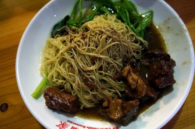 牛腩捞面,面很爽很弹牙,可惜酱汁不够因此面的味道就淡了一些,牛腩焖得挺软挺入味的,有很香浓的酱汁味。