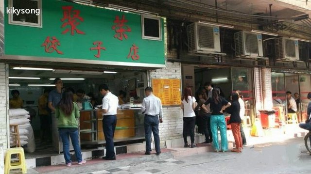 都知道会很爆满,但到达后还是被惊呆了~店面不大,有十来张桌子,场面就像茶楼等位那样。大家都坐得很挤,每桌旁边都站着等位的人盯着你看,收银台前的人龙也一直保持着10个左右。可能大家都觉得饺子要趁热吃才好吃吧,所以就算要等十几分钟,大家还是会耐心地等待。