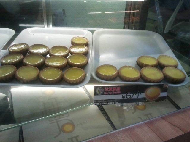 朋友强烈推荐他们家的蛋挞~我和朋友都是爱挞之人~之前来动漫星城有经过~不过一直没吃~这次和朋友一起来吃了~哈哈~他们家就3种产品~蛋挞~椰挞~鸡蛋仔~~都是我的最爱了~~\(≧▽≦)/~啦啦啦~果断3样都买了呢~(*^__^*) 嘻嘻……~说实话~蛋挞确实不错~很香的奶味~值得一试哦~6大元一个~挺大个的~不过椰挞就有点令人失望了~没什么椰丝~不喜欢~还要7元一个~不划算!鸡蛋仔11元啊坑爹~不过挺脆的~ok好吃啦~但是还是蛋挞最令人惊喜~不过价格呢~就感觉偏高了呢~鸡蛋仔是现做的~所以要等几分钟~也不是很久啦~不知道在香港的是不是更好吃呢~下次去香港再试试好了~