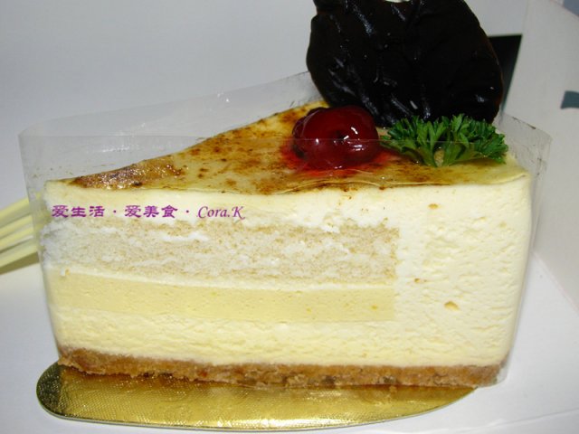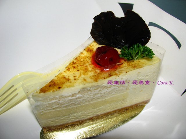 在纠结地分析了东西方向后,总算想起之前去五代同糖的时候MS见过缇奥,算是轻车熟路地找到店面,大概才刚刚营业,只有一位服务态度超好的店员GG在搞着卫生,原本想着要奶茶的,然而在看到橱柜中那诱人的芝士蛋糕后,某人立马缴械投降,选了一件荷兰蛋酒佐烤布蕾芝士,刚好用一张券换得,因为还不饿,所以打包提走,顺着正佳负一层女人街的通道到了时尚天河,找了一圈下来,没找到EJ065号,反而把肚子找饿了,于是乎坐扶梯上了地面,晒着太阳把蛋糕给分了,属轻芝士类,比较清爽不会腻,蛋糕很松软,醇醇地蛋香,中间夹着的烤布蕾如奶冻般幼滑,很不错的一款蛋糕。