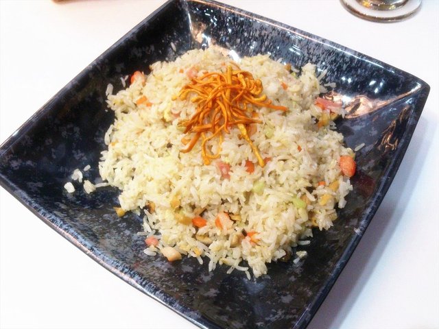 唐僧炒饭:比较开胃的是炒饭加入了萝卜干。。发觉只要加入了萝卜干小盆友都爱,醉了。。。。其实料不多,就是冬菇,火腿,蟹柳,萝卜干。特别之处是上面摆上了几条虫草花~炒饭比较香,口感不错。