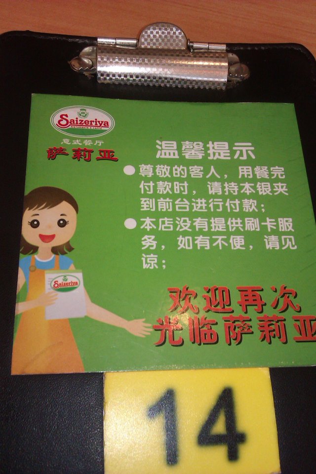每张桌都有一个编号,吃完埋单就带上这个牌到前台付款就OK了。