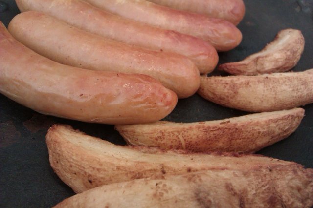 香辣肠,外韧内软,带点辣,还有一些烤过的土豆伴碟,土豆烤得很香,外脆内粉。