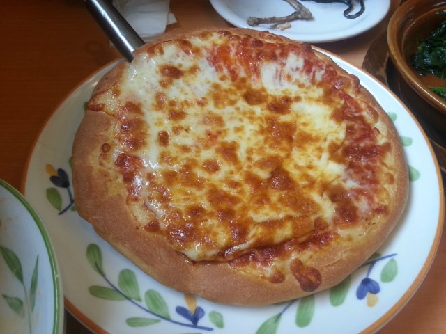 这个pizza其实就是双份芝士pizza。没有其他的肉类。可是非常满足!整个pizza铺满软软的芝士。看到就想吃!