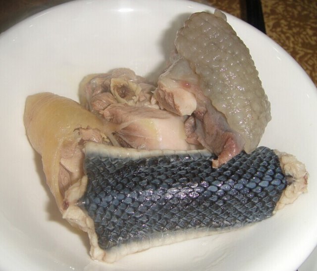 秋风一起,天气一转凉,就想到了吃蛇,要吃便靓正的蛇,在广州,唯有榕记了。前几天,约上朋友们,开始了入秋后的第一餐蛇宴。六点钟来到榕记,已经好多人了,不过还好,提早订了位。这次来榕记,首先要试下他们最近才推出的姜油三品皇。姜王三品皇有榕蛇版、水律蛇版和眼镜蛇版。榕蛇版288元一煲、水律蛇版和眼镜蛇版都是488元一煲。每煲包括蛇、鳄鱼龟、土鸡各约3斤重,够4到6人吃。真材实料,好抵吃。除了吃蛇外,当然少不了蛇血饭啦。当晚试了煲仔蛇血饭,比炒更为好吃。