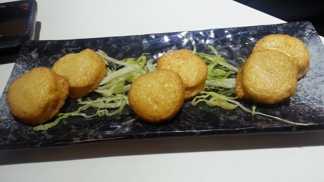 沙增芝士鱼饼(价格忘记了):卖相还算可以,一碟6个,鱼饼外面也是炸过的,这个尽量趁热吃,咬开鱼饼,看到里面的芝士酱缓缓流出,如果凉了再吃,就没有这种效果,芝士味道还算挺香浓。总体还算不错!