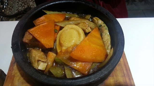 唐僧上素(菜名不知道有没有错):里面的食材都挺丰富的,有一只大鲍鱼在正中央,旁边还有一些斋的弄成鸡腿,红萝卜等等。味道总体还算不错的。