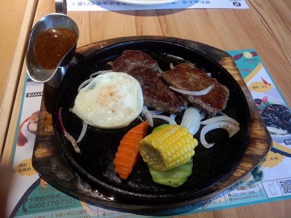 铁板猪颈扒也是5折优惠的,很好吃!比刚才的牛扒和杂扒好吃多了!值得推荐!这个猪扒应该是我在卡朋吃过最好吃的了,而且是卡朋的招牌!