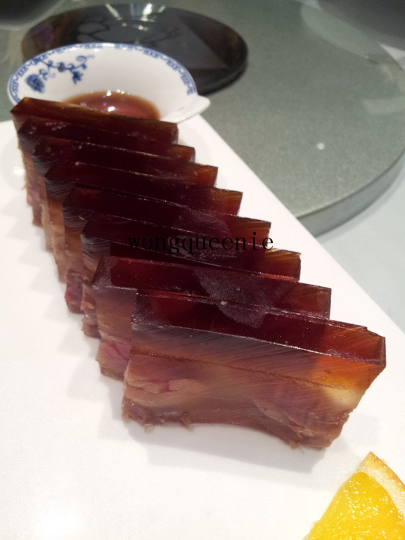 水晶肴肉,冷盘,卖相很不错,外观晶莹剔透,让人有一种不想破坏的感觉。入口有点冻,中间位置有一些肉,吃起来不会粘牙,口感不错,配上他家提供的醋点着一齐吃,味道更好。