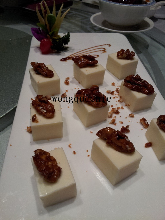坚果奶冻,也是冷盘,18元有9小块,性价比挺高的,在白色奶冻上面的是核桃,核桃的营养价值是很高的,入口甜甜的,与奶冻的滑配合得很好。