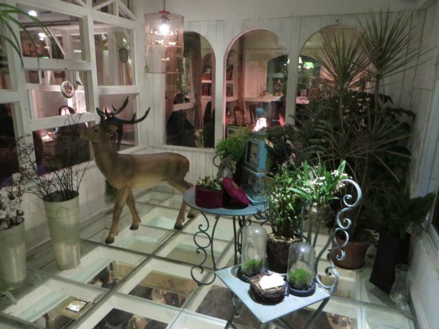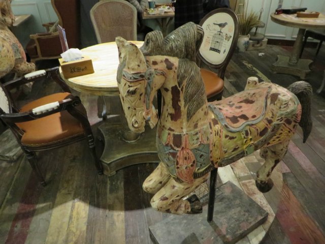 在中山三路的仁兴街有这么一幢小楼,全木结构,很有东山小洋楼Feel,红得发紫的秘密旅行仁兴街分店就在这里,楼内的复古装饰品多不胜数,西式的中式的都有,无论何处都带着些许梦幻般的色彩,大厅中的那张旋转木马圆桌很适合有着少女情怀的闰蜜在此缅怀童年时光,二楼的花时间工作室内的驯鹿徜徉在一片温室植物中,似乎在迎接着圣诞的到来,工作室的地面别出心裁地用上了透明玻璃,从上可以俯瞰一楼大厅的一切,不怕冷的话还可以坐在二楼的阳台,私密性够强。他家的洗手间也是艺术室一般的存在,最特别的当数二楼洗手间里那一个麦克风了吧。
