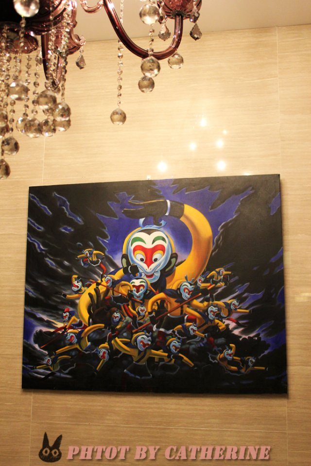 我们进餐的地方是VIP房,一进门口就看到了一幅有趣的画,就在华丽丽的吊灯前面,感觉好搞笑~~