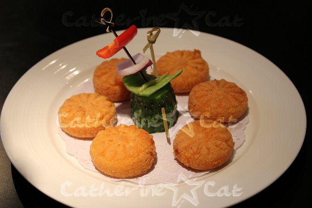 南瓜饼.外面脆脆的,但是一插下去就陷下去了,证明皮不是裹了很多粉(吧?)