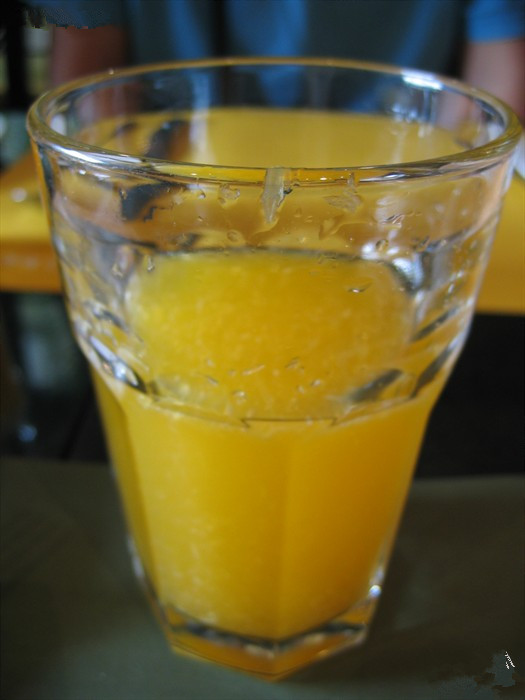 就告诉服务员我们也要饮料,雪碧、可乐和橙汁,我要了橙汁。