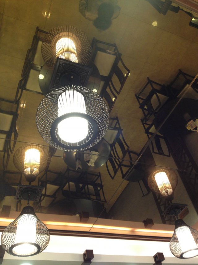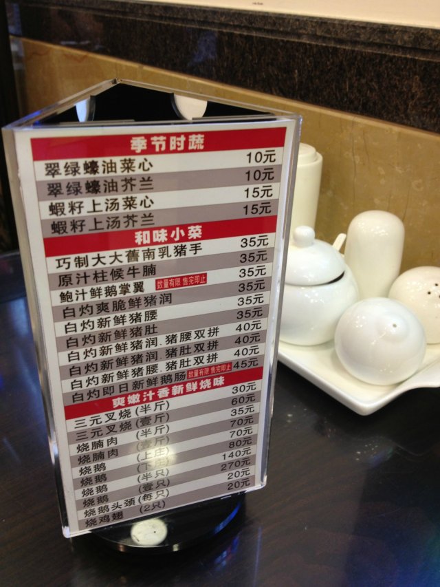 我们到了二楼,应该还有三楼(看到楼梯,没继续上去参观),环境很舒服,全部都是华丽的红木家私,冰冰凉的空调包你满意,服务员态度很好,坐下便上茶(茶为普洱),我们选了一个类似卡座的位置坐下,细看了一下价目,觉得有点贵~不过中午一顿还是ok的!!