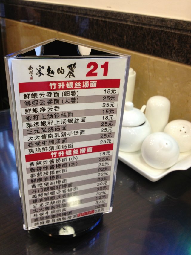 选了一个小号的炸酱面和一份大号的鲜虾云吞面。