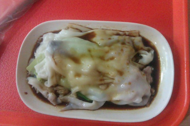 肠粉里面的瘦肉很大块,蘸上酱油味道很好。