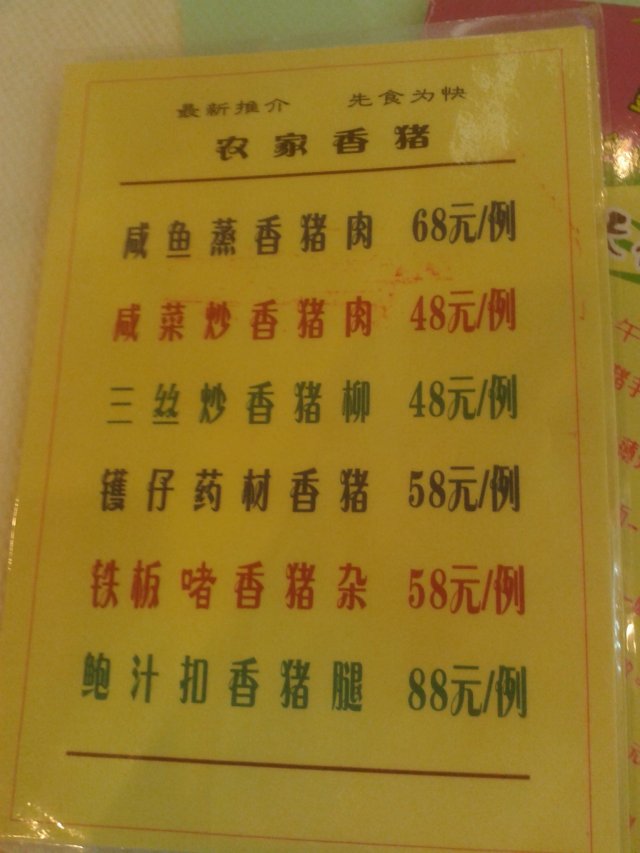 味道较好的是金钱片蒸生鱼和家乡炸果肉;金钱片蒸生鱼是把生鱼切成一片片,在来蒸,鱼很大条。