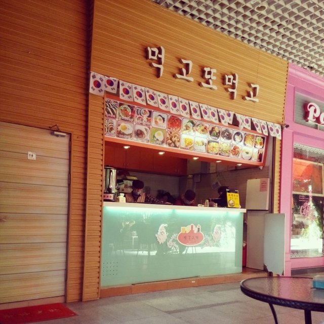 当时中午朋友带来这里吃的,位置比较偏僻走很多小路进来,挺多学生的,还要搭桌,不是室内环境,在楼底下的露天,有太阳刚好射进来的话有会一点点晒。去到就有餐具在桌上放着了,有免费wifi,点餐需要到前台。要了个招牌紫菜包饭10 元,朋友要了辛拉面15元。上菜速度不是很快,紫菜包饭有10块 随便吃吃就还可以,不是很好吃,紫菜卷包得挺漂亮,横切片也整齐,饭团倒是一般般,里面有些红萝卜啊 炒蛋啊 芝麻啊青瓜 什么的一起包着。辛拉面就像超市买的那种韩国方便面一包,我尝试了一下也挺辣的,没有什么配料,不怎么值,个人不是很喜欢。