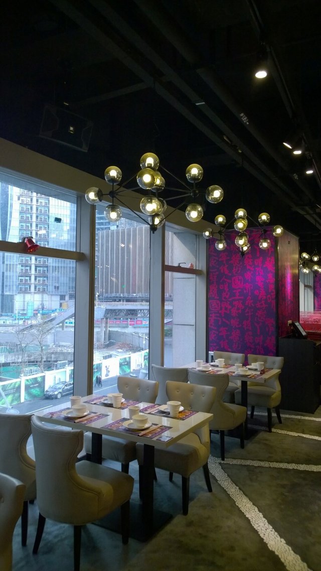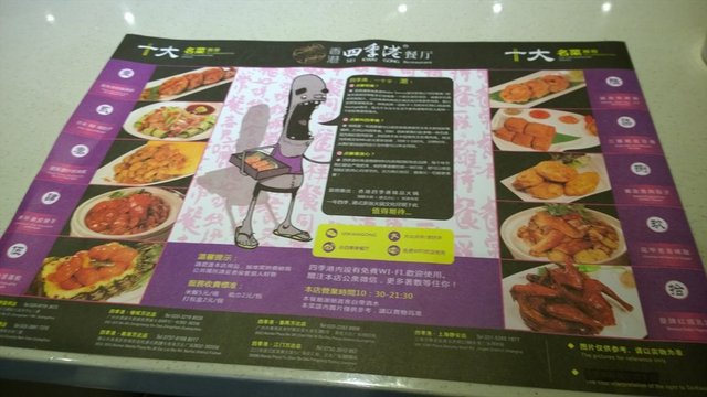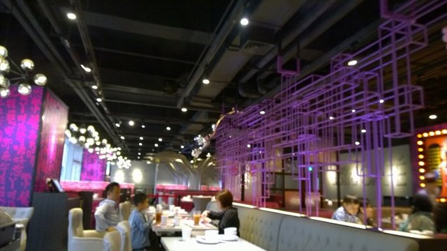 整个餐厅的格调是紫色的,墙上装饰了紫色的墙纸,紫色的围栏,甚至菜单的色调也是紫色。
