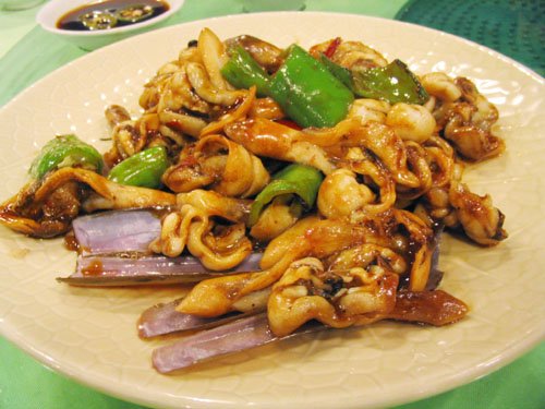 酱爆圣子,他们说清蒸吃得多,要试试这个做法,很“野”味,酱料味道不错~!比较肥美,哈哈~!