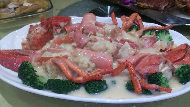 龙虾 茵MAYMAY等級42015-01-1952 瀏覽 關注 今晚在这边吃饭,有幸吃到一个名贵的菜式,“芝士龙虾面”。 本人较少吃龙虾,这碟龙虾的个头算大,目测有4斤重,肉也比较多。 芝士味浓郁,龙虾肉质丰富,大啖肉,弹牙新鲜。 10人一围的台,每人分一块就差不多,怀疑有没有被人偷吃的可能呢。。。 龙虾的钳部分没有敲碎,只能打包回家处理再吃,里面也很多肉不能浪费。 伊面吸收了龙虾芝士的酱汁,也很好吃,不会很腻。以上食評乃用戶個人意見 , 並不代表OpenRice之觀點。讚好分享龙虾 温祈福酒家 (红棉大厦) https://s.openrice.com/KtbT0m047CE00檢舉 酸菜牛肉饭 还没吃过龙虾呢,新鲜的一定会鲜甜呀2015-01-19 回覆 張貼 評分3味道3環境3服務3衛生3抵食用餐途徑堂食