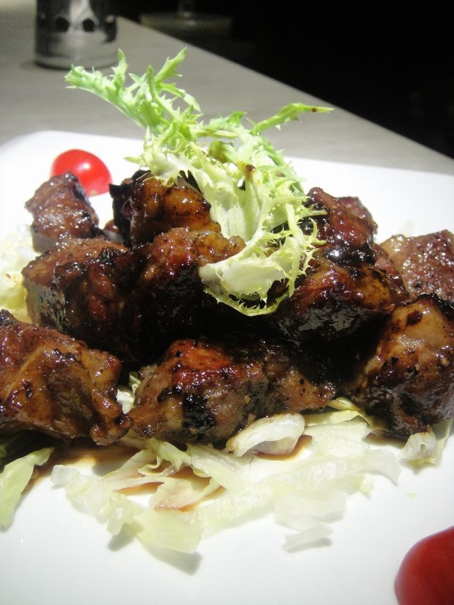 蜜汁和牛粒:选用日本和牛的肩板位的肉,肉质比较嫩滑,加上蜜汁,肉鲜中带有甜丝丝的味道,适合热恋中的情侣哦。