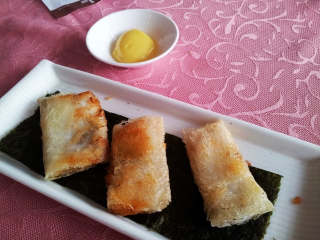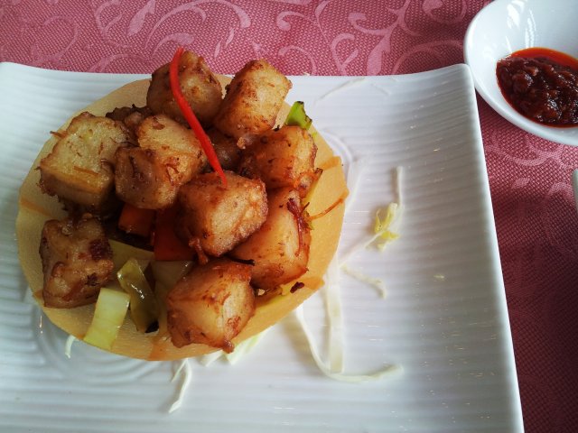 很有创意的桂鱼盒,这个味道好正,里面是整块的鱼肉,配合沙拉酱藕叶
