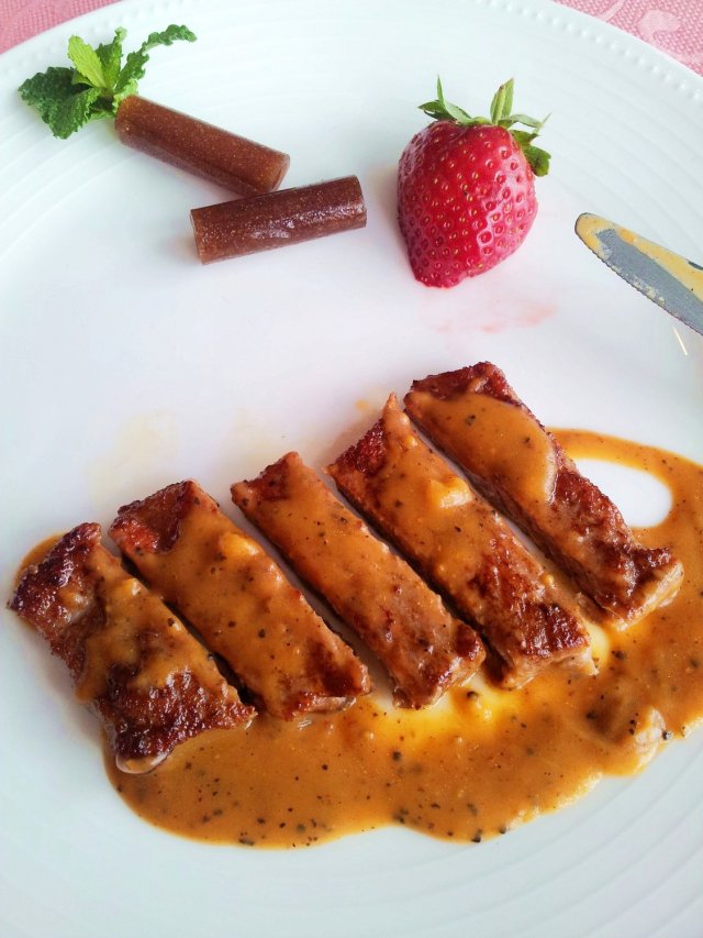 万幸的是,这正价168的豆腐干大小牛扒(大家可以参考旁边的草莓),味道的确无可挑剔!连家人都赞不绝口,味道醇厚,入口肉汁充满口腔,是我试过最好味的牛扒没有之一。