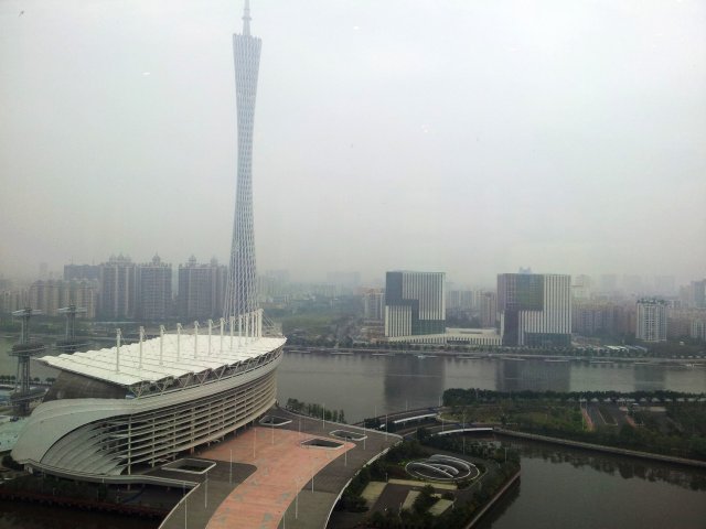 排队,拿号不提,终于可以登上观光电梯,感觉很好哟,还能俯瞰海心沙、平视广州塔感觉不错。
