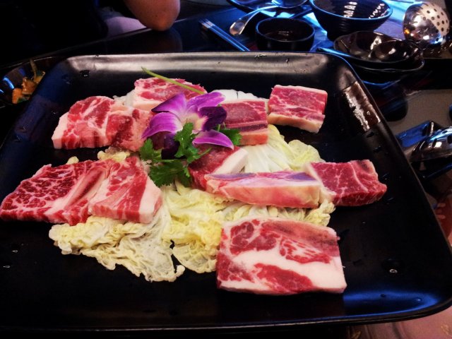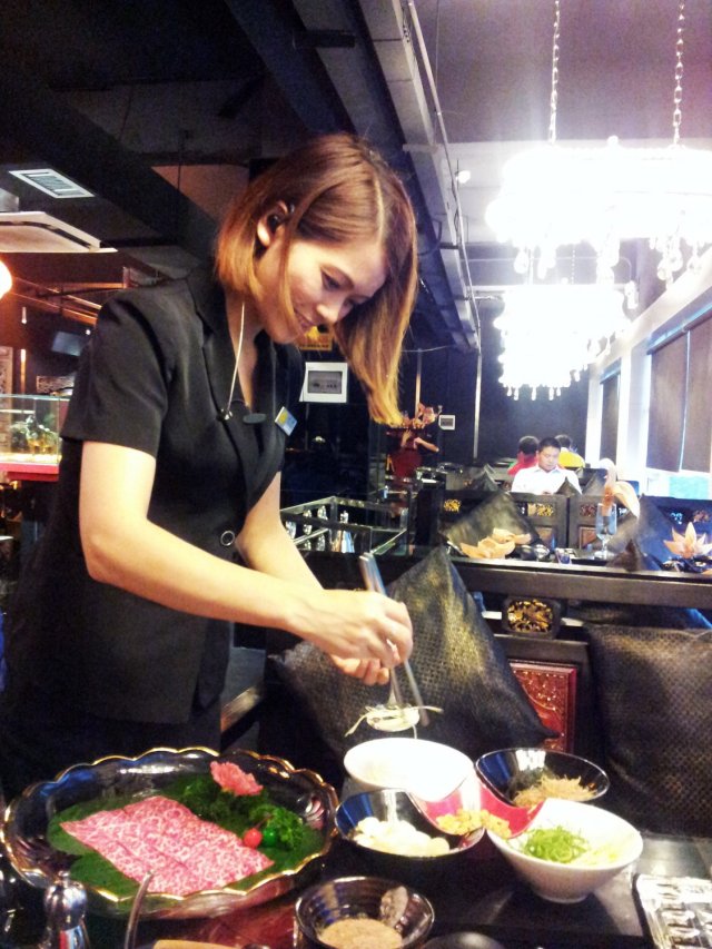 其实前面5A牛肉是生吃的,吃法类似生鱼片,还有专人服务哦,正!