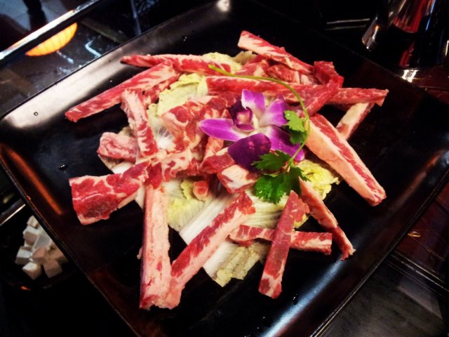 雪花肉排纹理细腻,切至厚薄适中,牛骨汤里涮一涮,香味全出。雪花肉排的魅力,在于其肥瘦相间,油花与嫩肉的上佳结合,入口滑嫩,其香味攻陷你的舌头,想停都停不下来!