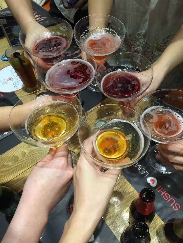 从左到右分别是蓝莓、樱桃、青苹果、山楂、桃子和玫瑰~都只是酒精含量2%的低度酒,对于不会喝酒的女孩子们也没有任何问题哟~