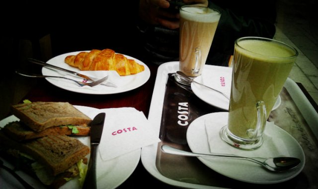 costa咖啡 ir77ir等級32012-09-1616 瀏覽 關注 装修很别致的一家咖啡厅,环境很有情调。点了一份意式番茄酱鸡肉帕里尼,是有两片面包夹着一片鸡肉和生菜,咬上一口,鸡肉嫩滑多汁,非常入味。点了一份巧克力香橙麦芬,蛋糕的造型,尝一小口,蛋糕口感非常软滑,香浓的巧克力酱便涌出来,十分美味。点了一杯拿铁咖啡,还没开始尝试就已经闻到浓郁的咖啡味,十分诱人。喝上一口,浓浓的咖啡味充斥着口腔,久久不挥散,令人回味无穷。以上食評乃用戶個人意見 , 並不代表OpenRice之觀點。讚好分享costa咖啡 悦达咖世家 https://s.openrice.com/KtbT0m0MIu300檢舉 張貼 評分4味道5環境4服務4衛生3抵食