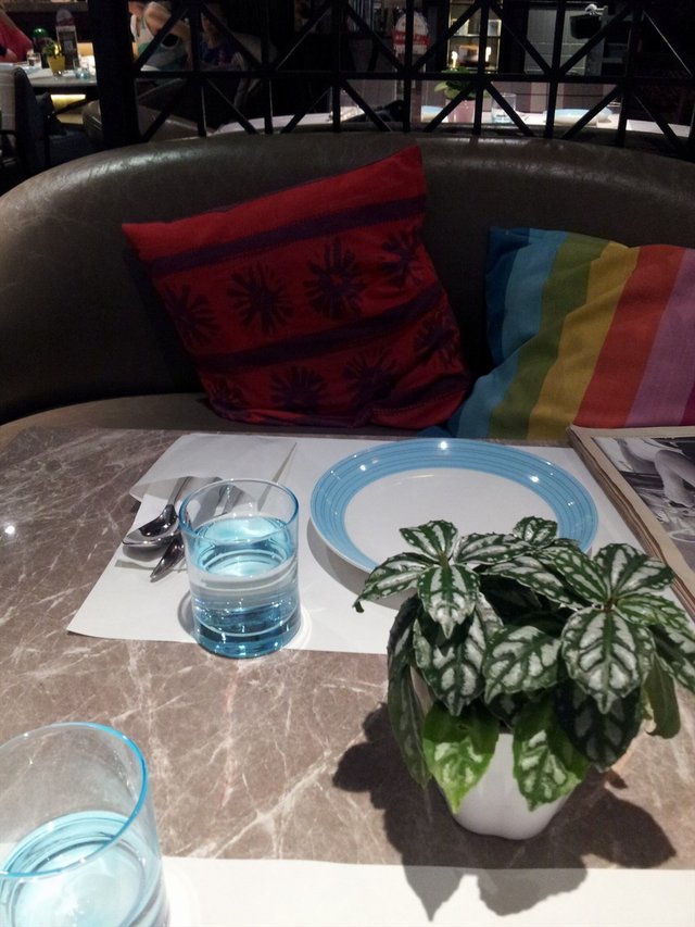 餐桌、餐具都是十分舒服的轻色调,餐牌印制上那种邮报的手感挺不错。每款菜式都会详细标注出重量,这样大致上就可以估摸出分量有多大了。