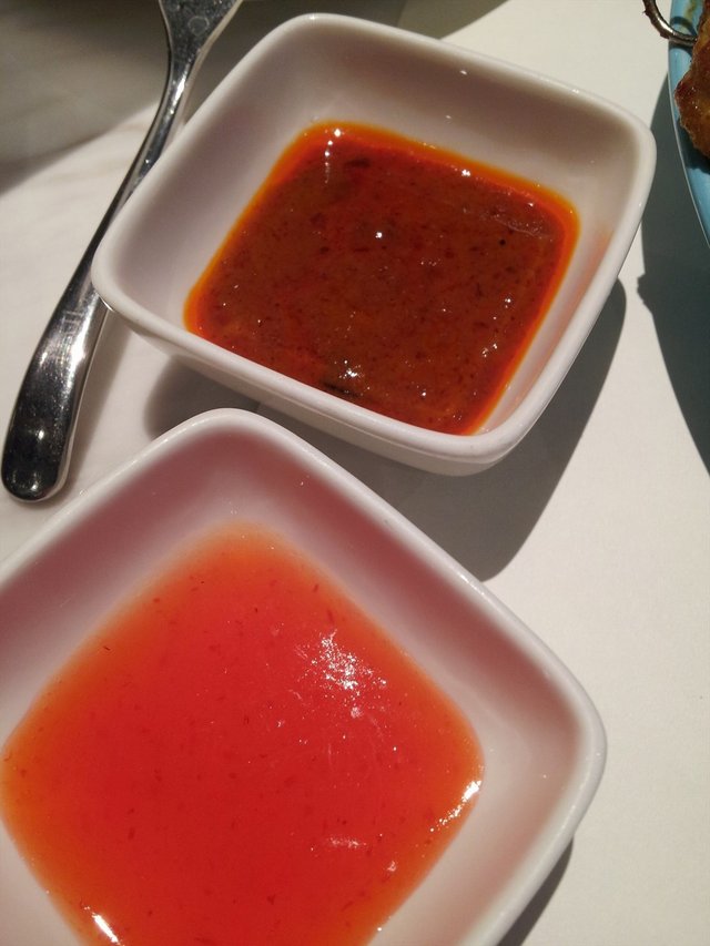 配送的酱料有辣椒酱和泰式甜辣酱,感觉泰式甜辣酱跟这几款小吃更合衬。
