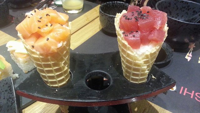 寿司雪糕:这次来就是冲着它而来,外观看上去跟普通的手卷没啥区别,出面的皮吃用雪糕圆筒,建议一上就马上吃,那样才能吃出皮的脆,里面的饭跟食材也不错,尤其里面的酱料,超棒!!值得推荐~~