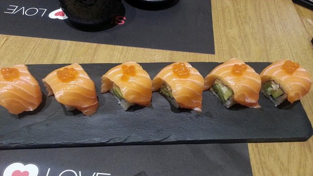芝士青瓜三文鱼卷:三文鱼切的厚薄不一,上面还有几粒蟹籽作为装饰,味道总体不过不失吧。