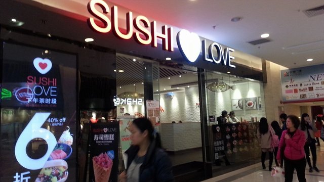 sushi love位于正佳广场负一层,地理位置优越,在翠华旁,很容易就看的到,店名非常显眼。门口的落地玻璃可以让走过的路人或者是在里面用餐的顾客可以彼此看到大家。