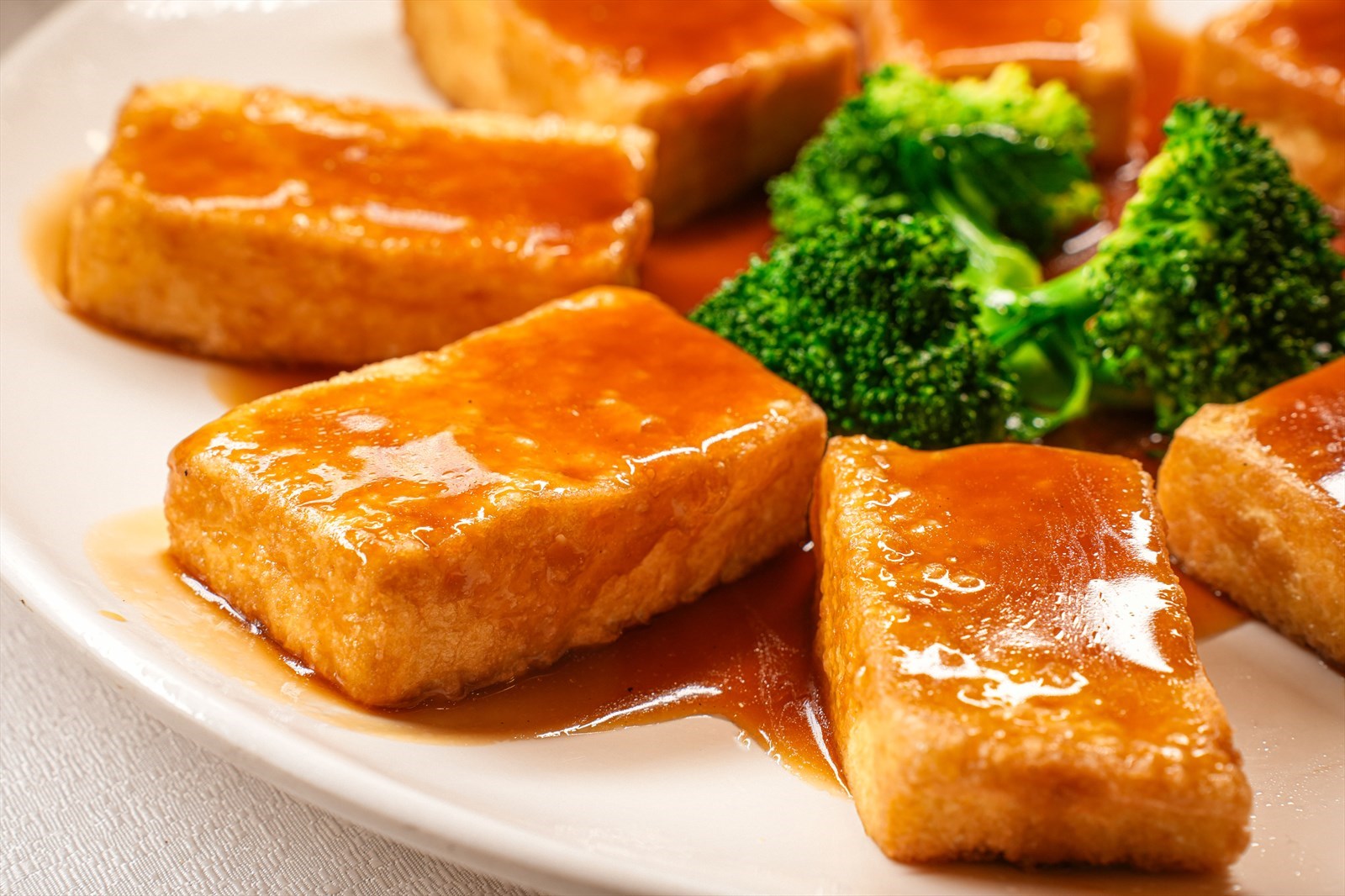 此菜的「豆腐」是店內的巧思之作:並非傳統豆製豆腐,而是以新鮮雞蛋調製蒸成的雞蛋豆腐。雞蛋豆腐先經輕煎,外皮形成薄而金黃的脆殼,內裏則保持著雞蛋特有的綿軟細嫩;隨後澆上熬製數小時的濃稠鮑汁,鮑汁的鮮美與雞蛋豆腐的清甜相互滲透,每塊豆腐都裹滿瑩潤的醬汁。入口先是脆殼的微酥,接著是內餡的柔滑,鮑汁的醇厚鮮香縈繞其間,盤中點綴的西蘭花更添清爽,口感層次豐富卻不厚重。