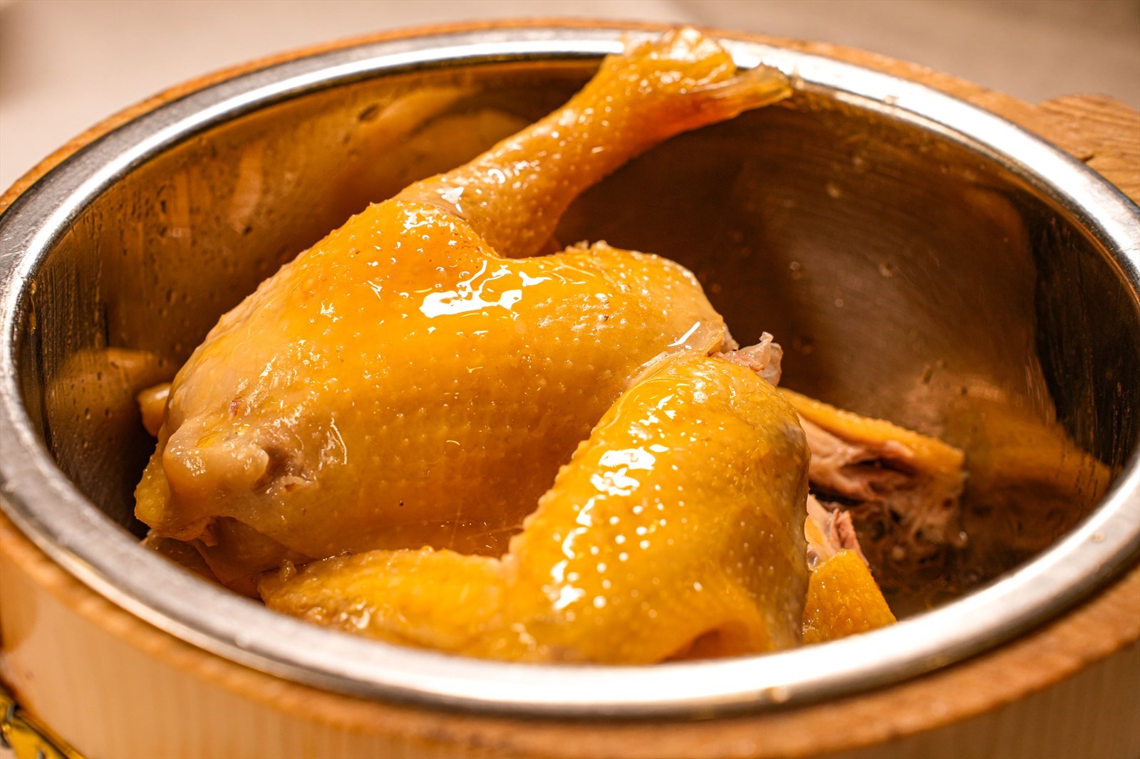 套餐配備的半隻湛江雞,還附贈一碗香濃雞油,覺得味道不夠時蘸取少許,雞香會更為濃郁。湛江雞向來以「走地散養、肉質緊實、鮮而不柴」著稱,多選用雷州半島、徐聞等地的散養土雞,吃穀物、活動空間大,肌纖維細膩,雞皮薄而緊實,煮後不油膩。婆婆家的湛江雞可謂做到了「雞中極致」,雞皮爽滑緊脆,肉質滑嫩卻不失纖維感,雞油香而不膩,可見廚師的烹飪功力至關重要。
