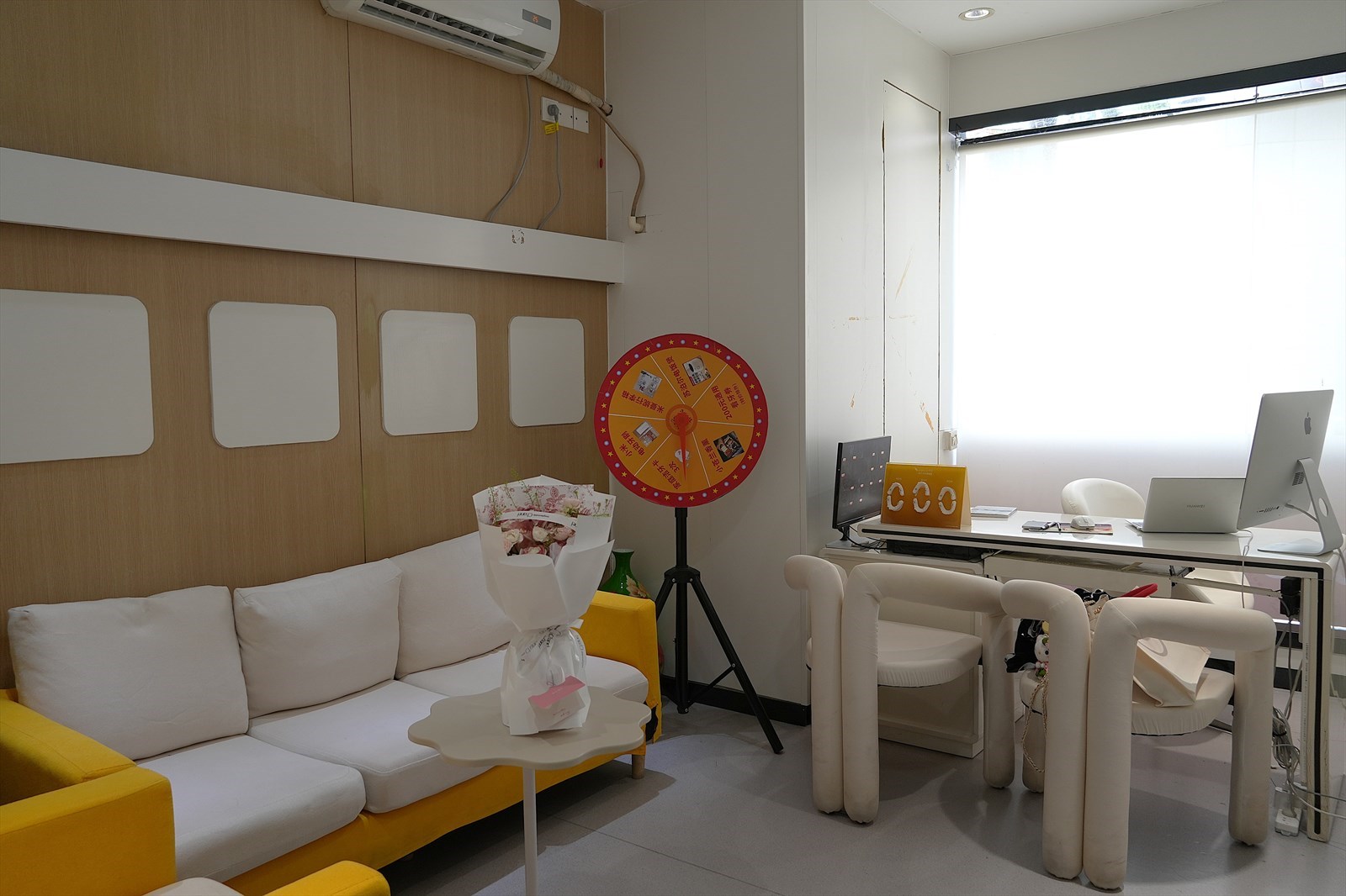 推開二樓大門,整體是暖色系的設計,同時搭配著柔和燈光,讓空間顯得開闊舒適,完全沒有傳統醫院的冰冷感。前廳設有舒適的休息區,並提供免費茶飲,貼心照顧等候的患者。