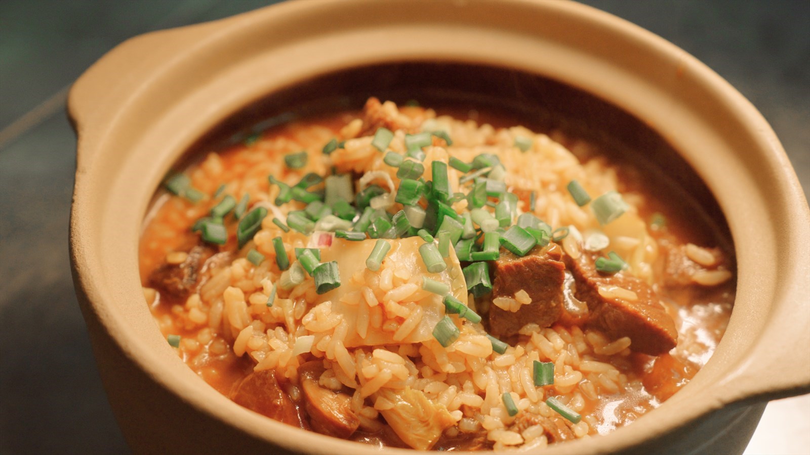 這道被譽為北京小孩忘不掉的味道,選用牛腩、牛蹄筋、口蘑、白菜搭配米飯製作。做法上用高湯提香,將牛腩和牛筋煨至軟爛,讓米飯充分吸收濃郁的肉香,入口滿是牛肉的原香,味道醇厚濃郁。