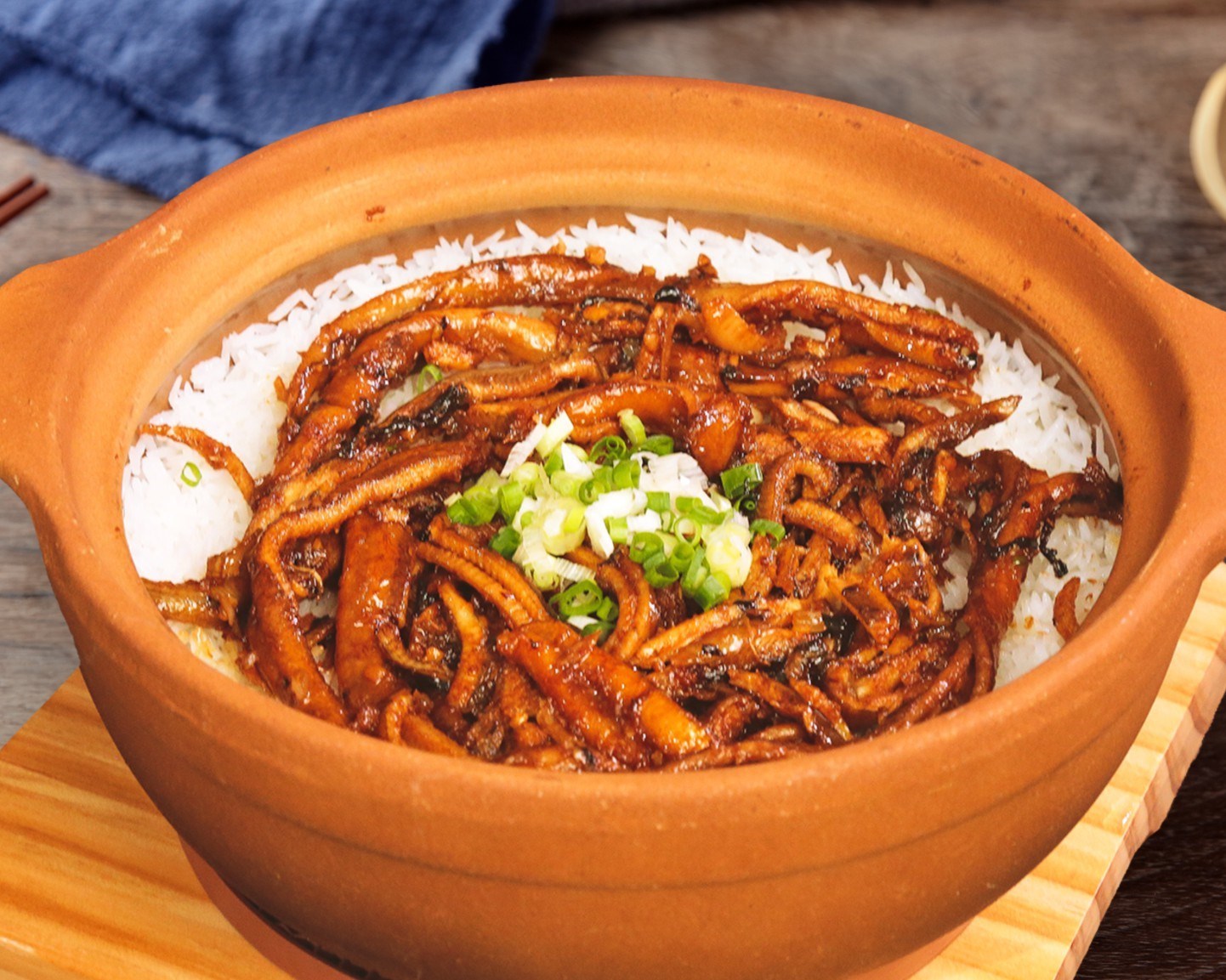 煲仔飯的起源就在五邑地區,其中又以台山煲仔飯最為出名。師傅將黃鱔切成絲狀,煮製時能充分入味,入口鮮嫩彈牙,米飯吸飽了黃鱔的鮮汁,粒粒分明,香氣十足。
