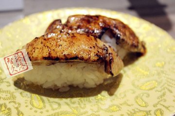 靠近人民广场,在818广场的B1楼,这家环境很好,不知是不是因为B1楼层的关系,感觉生意却很一般。鹅肝寿司一直很喜欢,他家的味道也不错,特别是上面的鹅肝可以说是入口即化的感觉。鳗鱼寿司还真的蛮好吃的,上面的鳗鱼很新鲜,还用火烧过的样子,挺香的。其次三文鱼和北极贝味道和外面的差不多,不过是对的起这个价格了。