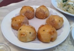 朋友团的餐,其实,这家酒楼的招牌还是很醒目的,不过东直门这边很是车水马龙,要不是特意找,恐怕很多人不会注意到。像西单的海底捞一样,有专梯直达,服务员都挺礼貌,遇到老人都会主动搀扶。餐厅里的布置比我们想象中要豪华,一进门就看到五只金色小猪的塑像,每只小猪都有独特的造型和pose,或可爱、或妩媚、或销魂……我们被引领进大厅,周围很多桌都有客人。我们三个人被安排在一个大圆桌上,看起来很隆重的样子。扫视了一下周围,90%的客人都是团购来吃的,因为菜品都一样。我们三个人,加了一个菜,商家给打了8折。餐前按就餐人数赠送南瓜粥,很浓稠香甜,但对我来说浓了一些,另外两个朋友很爱喝。翠柳核仁 凉菜,绿色的是苦菊,上面有核桃仁,下面配了少许枸杞,咸鲜,很爽口,很快被我们消灭一空。圣女果炒虾仁 用的是圣女果干,直接吃有点儿酸味;虾仁个头不小,糖醋口,看起来不多,可挺禁吃。骨香多宝鱼 鱼架过油炸铺在盘子上,上面附上一层清炒豇豆,最上面覆上多宝鱼片,鱼肉很滑嫩,有豇豆作配菜,可以解腻。吃到只剩下鱼架时,服务员把团端走,我们没听见他的话,以为撤盘了,过了一会儿,他把用刀切成小份儿的鱼架端了回来,切好后,我们才看到上面还是有点儿肉的,有些部分被炸得酥酥的,挺香不过也有点腻。溜肉段 又是一个糖醋口的菜,是我们学生时代的大碍,说实话,主辅料都还算足,味道也不多,不过这些菜品都是“硬菜”,很占肚子的。铁板酸菜五花肉 我们零点的菜,酸菜味道不错,肉片不多。东西是传统的,做法是韩式的,就是量不大,铁板上薄薄的一层。脆皮猪仔包、榴莲酥 好像直接给的拼盘,各三个,小猪的样子很可爱,里面是黑芝麻?不甜,我喜欢;榴莲酥的味道很浓郁,不爱吃榴莲的还是算了吧。饮料 只有凉茶和果汁两种可以选,我们都要了果汁,西瓜汁和橙汁的混合。应该都是鲜榨的,味道很浓,分层装在被子里,像鸡尾酒,挺大一杯。服务不错,服务员不会在身边盯着,却会在周围,又需要的时候他们就过来,丝毫不会因为是团购的客人而怠慢;而且在区卫生间的时候,服务员居然会在外面等着,然后再把客人引领回座位,周到。有三点小意见,第一,卫生间没有明确的指引标示,服务员不领过去,还真不一定找得到;第二,看菜单上的餐厅介绍上说这家餐馆是东北菜为主,作为东北菜,可能大家期待的性价比会跟粤菜有所不同,因此这边相对来说,价位还是偏高一些;第三,平心而论,单个菜品的味道都还不错,但这样的配餐方式似乎不太科学,素菜少、肉菜多;清爽的菜品少,甜腻的菜品多,所以,吃完之后我们普遍的感受是偏腻。总体来说是一次愉快且超值的团购经历。查看更多
