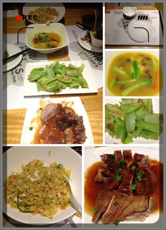 与好朋友原先越好在中信吃晚饭,没想着中信在闭门装修,只能炮灰KKMALL找吃的。吃饭的点,哪里都人多啦。。看见有空档就毫不犹豫的进去。。壹日叁餐。。每天上下班都经过,还是第一次进来吃饭菜品种类选择较多,随便跳了几样等吃中至于服务吧,可能是人比较多,服务员的分区也没有很固定,有点忙不过来的感觉咯。还行咯~o~上菜速度倒是挺快的,热腾腾的,加上很饿,所以感觉味道还不错,真有家常饭菜的味道。三杯鸭4分之1支鸭,肉还是比较多,不过有点粗,黏牙,三杯鸭的味道没有,倒是有点想卤水鸭,可能是很早就做好的,放得有点凉了。黄酒炒鸡胗个人很爱吃爽口的菜,鸡胗是其一。这道菜用黄酒来煮,有客家风味的说。黄酒的酒味不浓,甜度把握得还不错,鸡胗爽口脆,芦笋爽嫩,黄酒汤热辣辣,暖胃好吃。水东芥菜首先从色泽上就已经让我食指大动啦脆口的芥菜,除了新鲜还有更适合的词嘛。。清炒就足够啦。很赞!吃了肉,吃了蔬菜,喝了汤,总觉得不够是不是。当然还要主食啦,简简单单的蛋白炒饭,再家常不过啦。壹日叁餐,需要的不是华丽丽的豪餐,简单的食物,新鲜,有家的味道!觉得这个餐厅还不不错的选择,食物跟点名相符,朴实的家常菜,价格也算公道。再适合上班族作为午饭之选不过啦。查看更多