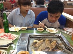 这家平价烤肉店我倒是经常听说 今天偶然路过附近 就和朋友一起来吃吃店堂不大 座位很多 又是烤肉 所以味道真的蛮大的 要说有什么特点就是便宜啊 烤肉有三档畅吃的价格 39 49 59 39是没有海鲜的 只有肉我们2个女的战斗力都很弱的 所以选了最便宜的39然后 感觉那个什么牛肉 最好吃 因为这个人是浸过酱汁的 味道就感觉鲜美一点五花肉什么的也不错 他们家的芥末酱油调的不错 蛮够味的但是我个人不推荐鸡肉 哈厚的肉 烤好了 就感觉肉木木的 胸部肉什么的没什么鲜味的素菜我喜欢烤茄子这家店蛮会做生意的 餐具是1元一份 然后烤肉的纸是1元一张 基本你烤一顿 总要换张纸的不过还可以接受啦 我觉得性价比还是可以的 特别是爱吃肉的能很能吃的 绝对是合算的难得看见一家店 多数客人都是男人的那 哈哈哈查看更多